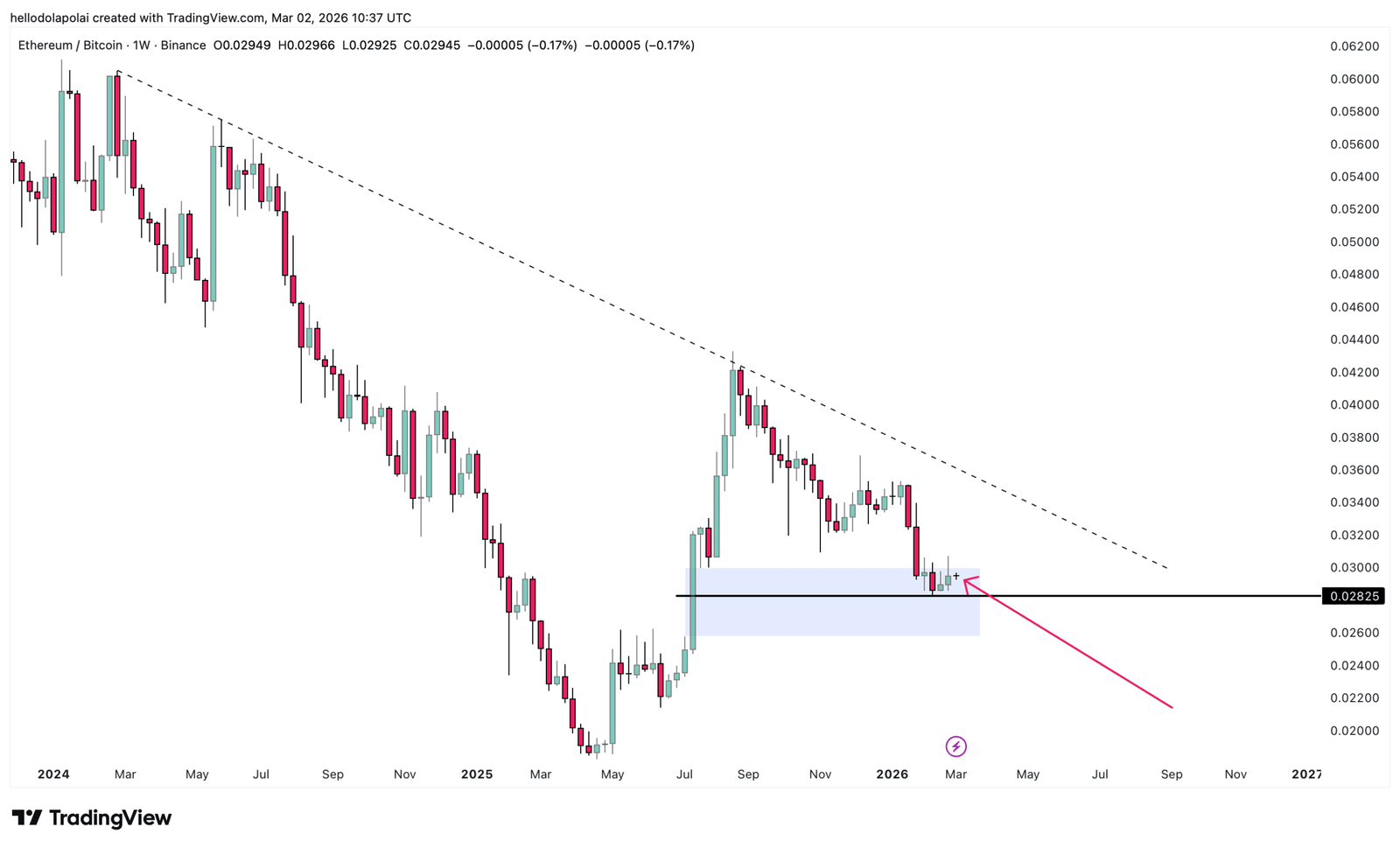 Das ETH/BTC-Paar bleibt eines der klarsten Barometer für die Kapitalrotation innerhalb von Kryptowährungen.