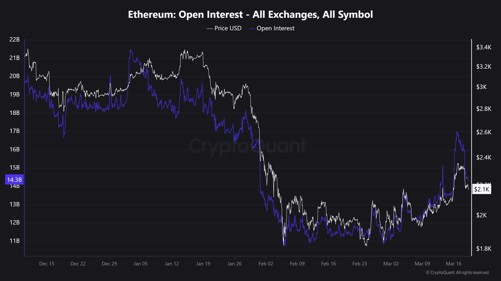 In der Zwischenzeit, Offenes Interesse erholte sich von Tiefstständen nahe 11 Milliarden US-Dollar auf 14 Milliarden US-Dollar, was eher darauf hindeutet, dass neue Positionen eingegangen sind, als dass es zu erzwungenen Ausstiegen kam. Dieser allmähliche Wiederaufbau spiegelt eher eine vorsichtige Beteiligung als eine aggressive Ausweitung der Verschuldung wider.