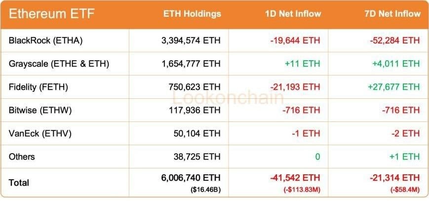 Laut On-Chain-Daten von Lookonchain belaufen sich die gesamten wöchentlichen Abflüsse damit auf 58,4 Millionen US-Dollar. Institutionelle Anleger haben sich zurückgezogen, was die Unsicherheit über die Zukunft von Ethereum noch verstärkt.