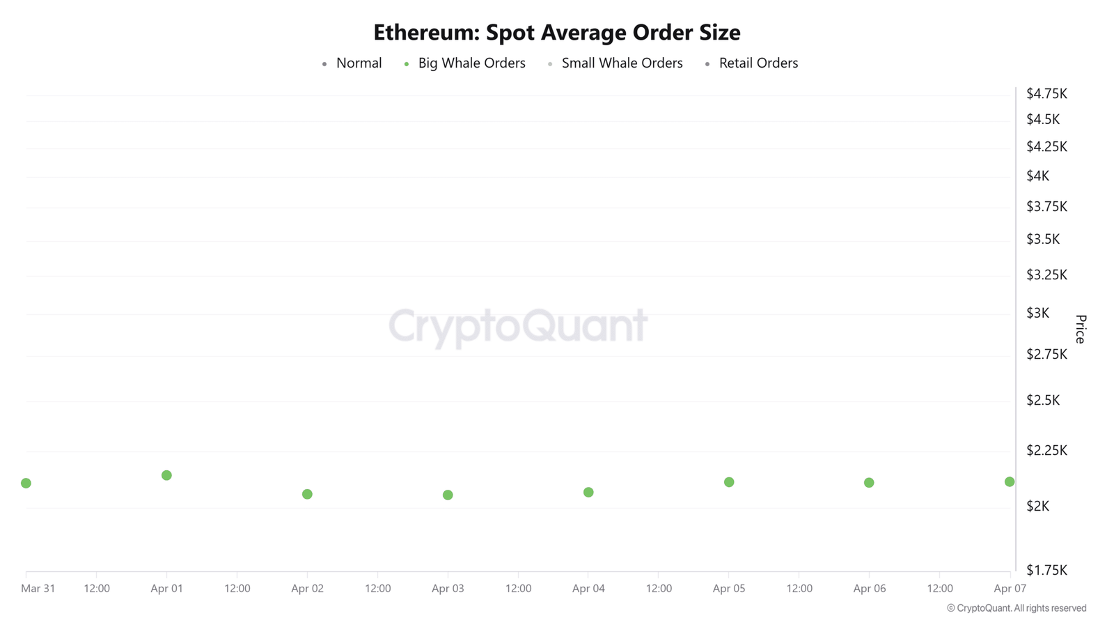 Die Spot-Side-Wal-Aktivität zeigte jedoch, dass sich die Wale auf dem Niveau von 2,1.000 US-Dollar angesammelt haben. Die Spot Average Order Size-Daten von Ethereum von CryptoQuant zeigten im vergangenen Monat konsistente Whale-Orders.