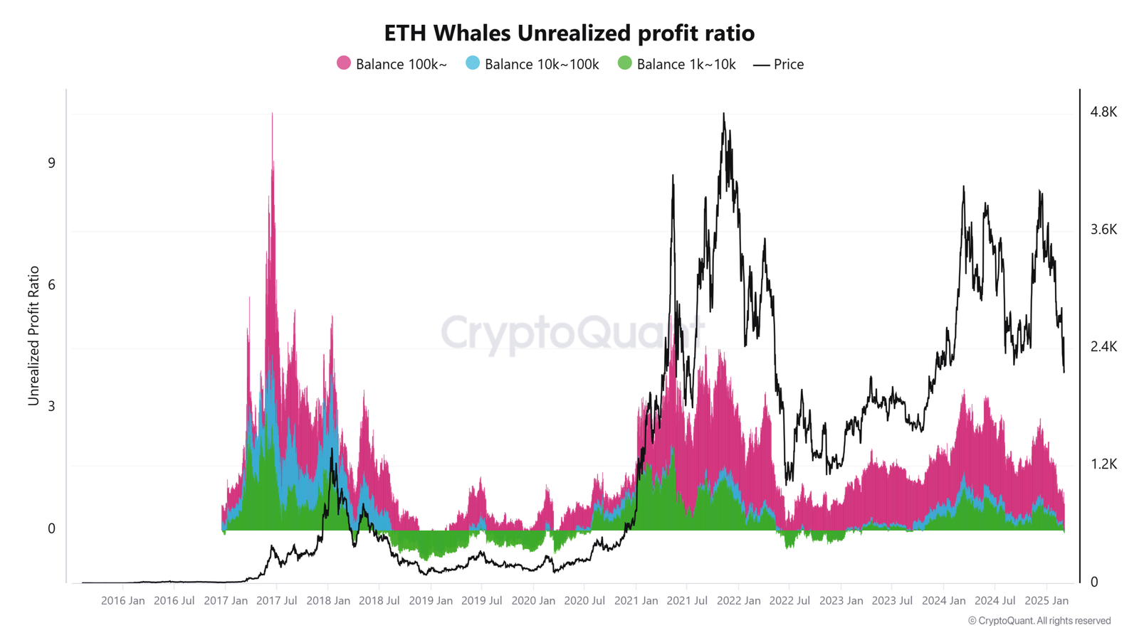 Die nicht realisierte Gewinnquote von Ethereum -Walen fiel auf das Niveau, das zuletzt während des vorherigen Bärenmarktes beobachtet wurde. Kryptoquant -Benutzer Dunkelfrost stellte fest, dass intensive FUD die Abstammung von ETH/BTC begleitete.