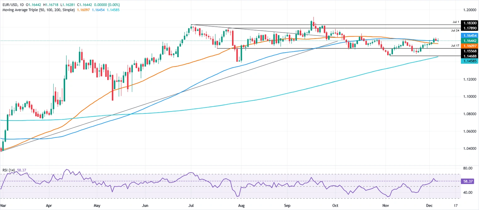 Am Freitag blieb der EUR/USD-Kurs stabil und dürfte die Woche mit einem Plus von 0,39 % beenden. Der Handel schwächte sich bis zum Wert von 1,1650 ab, da die Händler die Entscheidung der Federal Reserve nächste Woche im Auge hatten.