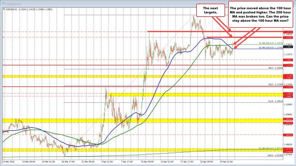 Der Eurusd drückte über den 100-stündigen gleitenden Durchschnitt von 1,1370, ein Niveau, das zuvor zweimal am Tag Kundgebungen zum Stillstand gebracht hatte. Nach dem höheren Brechen erweiterte das Paar die Gewinne durch den 200-stündigen gleitenden Durchschnitt von 1,1397 (grüne Linie) und erreichte ein Hoch von 1,1413. Der Momentum verblasste jedoch und der Preis hat sich seitdem unter dem gleitenden 200-Stunden-Durchschnitt zurückgezogen, der derzeit um 1,1392 handelte.