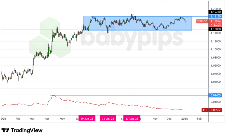 Das technische Bild verrät es: Seit Mitte 2025 verharrt EUR/USD in einer Spanne zwischen etwa 1,15 und 1,18. Ausbrüche über 1,1800 sind wiederholt gescheitert, was darauf hindeutet, dass der Trend zwar die Stärke des Euro begünstigen könnte, die Käufer jedoch noch nicht zuversichtlich genug sind, um deutlich nach oben zu drängen.