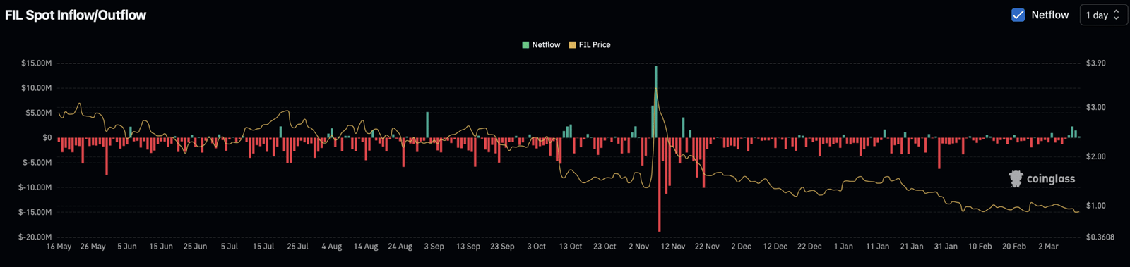 Zum Zeitpunkt der Drucklegung, data Aus dem Spot-Börsen-Netflow von CoinGlass geht hervor, dass FIL im Wert von mehr als 4,22 Millionen US-Dollar in den letzten 72 Stunden die Börsen verlassen haben.