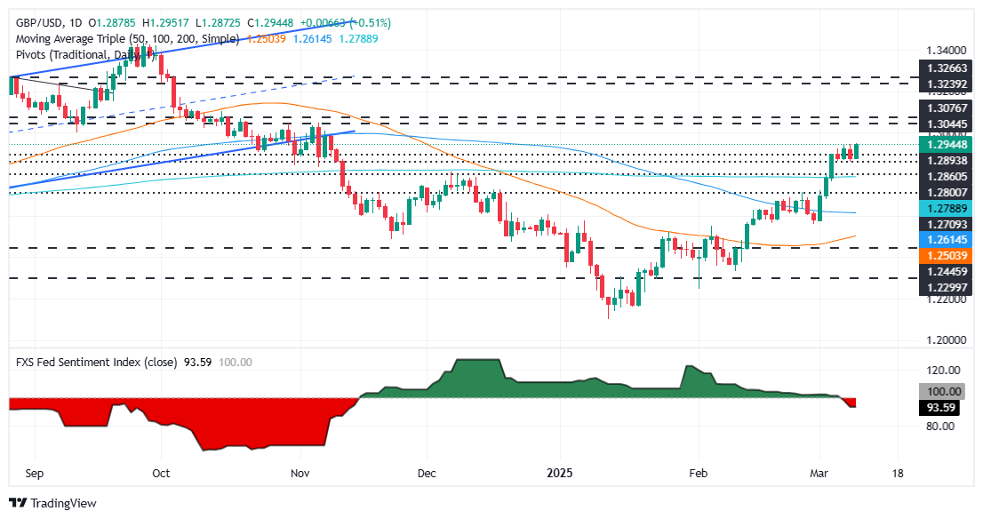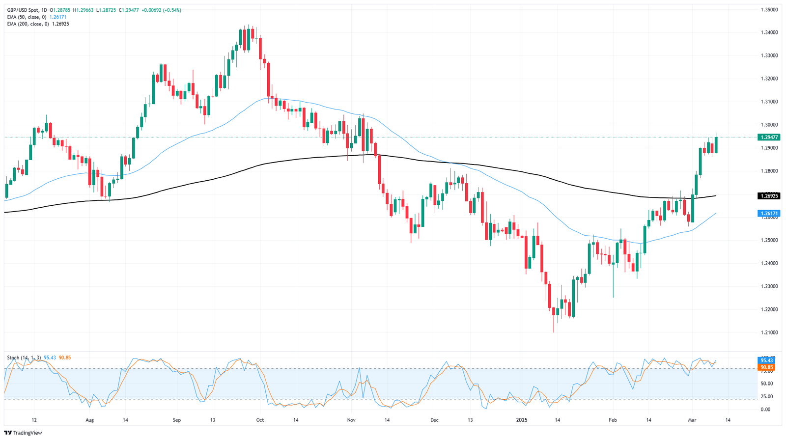 Das Pfund Sterling (GBP) erweiterte am Dienstag seine Gewinne gegenüber dem US -Dollar (USD), als dieser aufgrund der kontroversen Handelspolitik durch den US -Präsidenten (US), Donald Trump, weiter stieg. Er kündigte einen zusätzlichen Tarif von 25% auf Aluminium- und Stahlimporte aus Kanada an, da letztere Aufgaben für Strom in New York, Michigan und Minnesota anwendet. Der GBP/USD -Paar wird bei 1,2945 um 0,53%handelt.