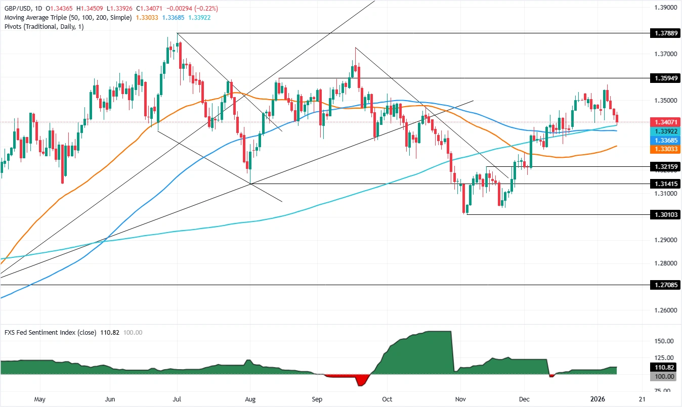 Das Pfund Sterling (GBP) geht am Freitag zurück, nachdem der Nonfarm Payrolls-Bericht vom Dezember gemischte Zahlen lieferte, obwohl Händler ihre Wetten auf eine Zinssenkung im Januar reduzierten. Zum Zeitpunkt des Verfassens dieses Artikels GBP/USD wird bei 1,3412 gehandelt, nachdem er ein Hoch von 1,3451 erreicht hatte.