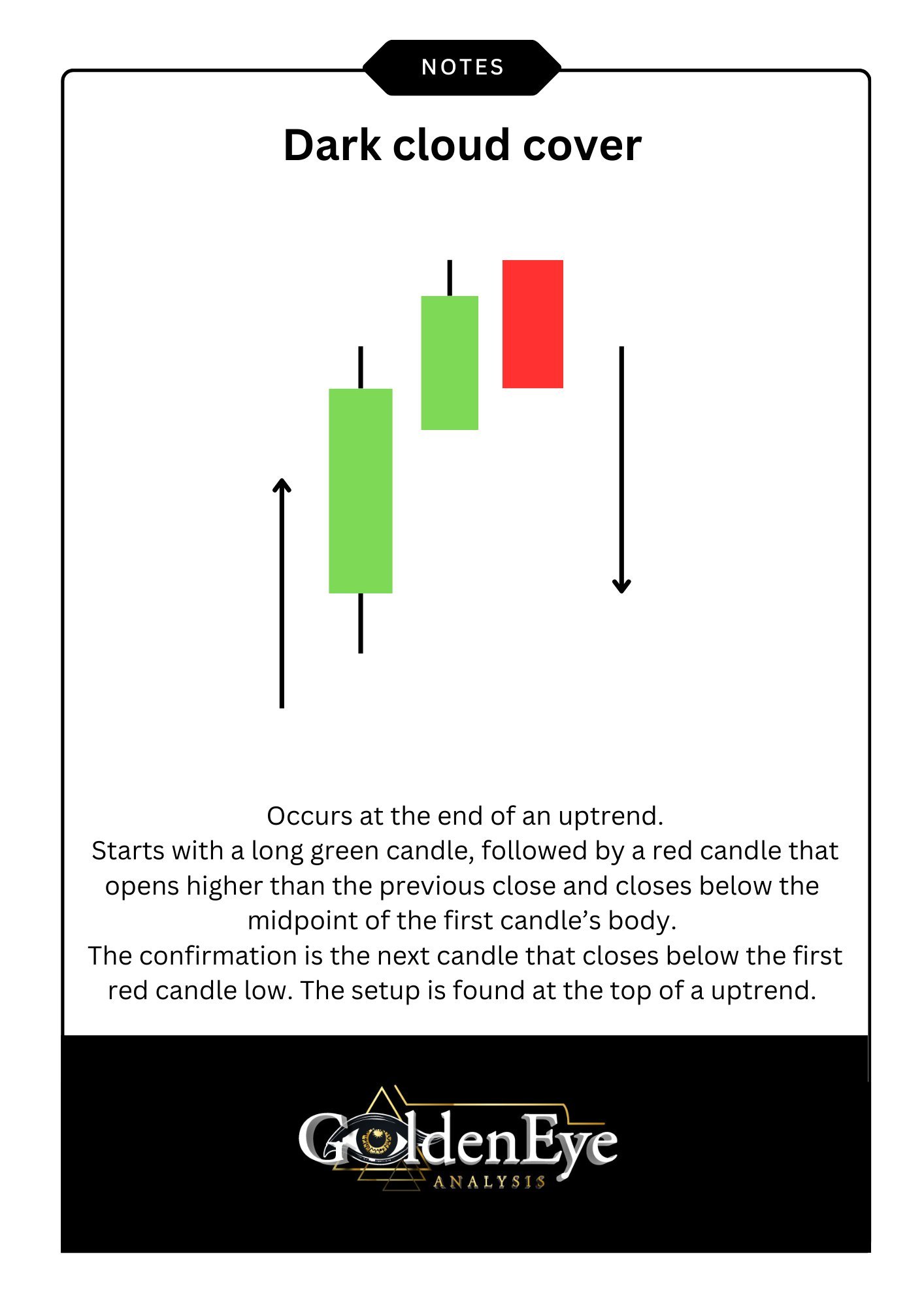 Auf das dunkle Wolksabdeckungsmuster tritt auf eine starke grüne Kerze auf, die von einer roten Kerze folgt, die über der vorherigen Schließung öffnet, aber unter dem Mittelpunkt des Körpers der ersten Kerze schließt.