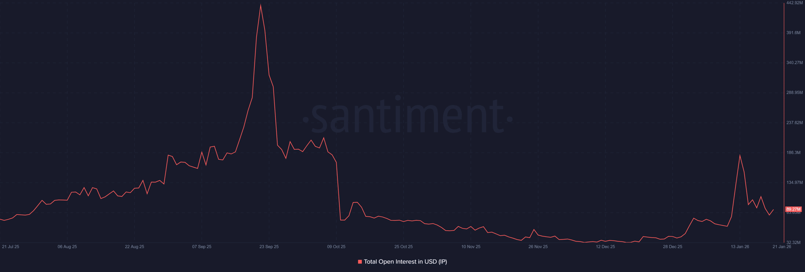 Das Open Interest von IP ist in den letzten 24 Stunden um 10 Millionen US-Dollar gestiegen, was auf einen Anstieg des frischen Kapitalvolumens hindeutet, das in den Markt strömt. Große Player bauen bei Kursrückgängen mehr Long-Positionen auf.