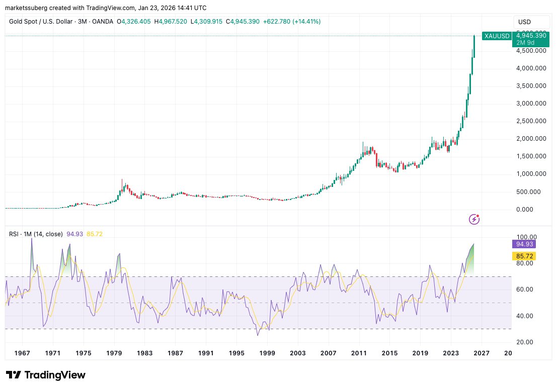 XAU/USD erreichte über Nacht neue Höchststände von 4.967 $ pro Unze, wobei BTC/XAU kaum die 18-Unzen-Marke hielt.