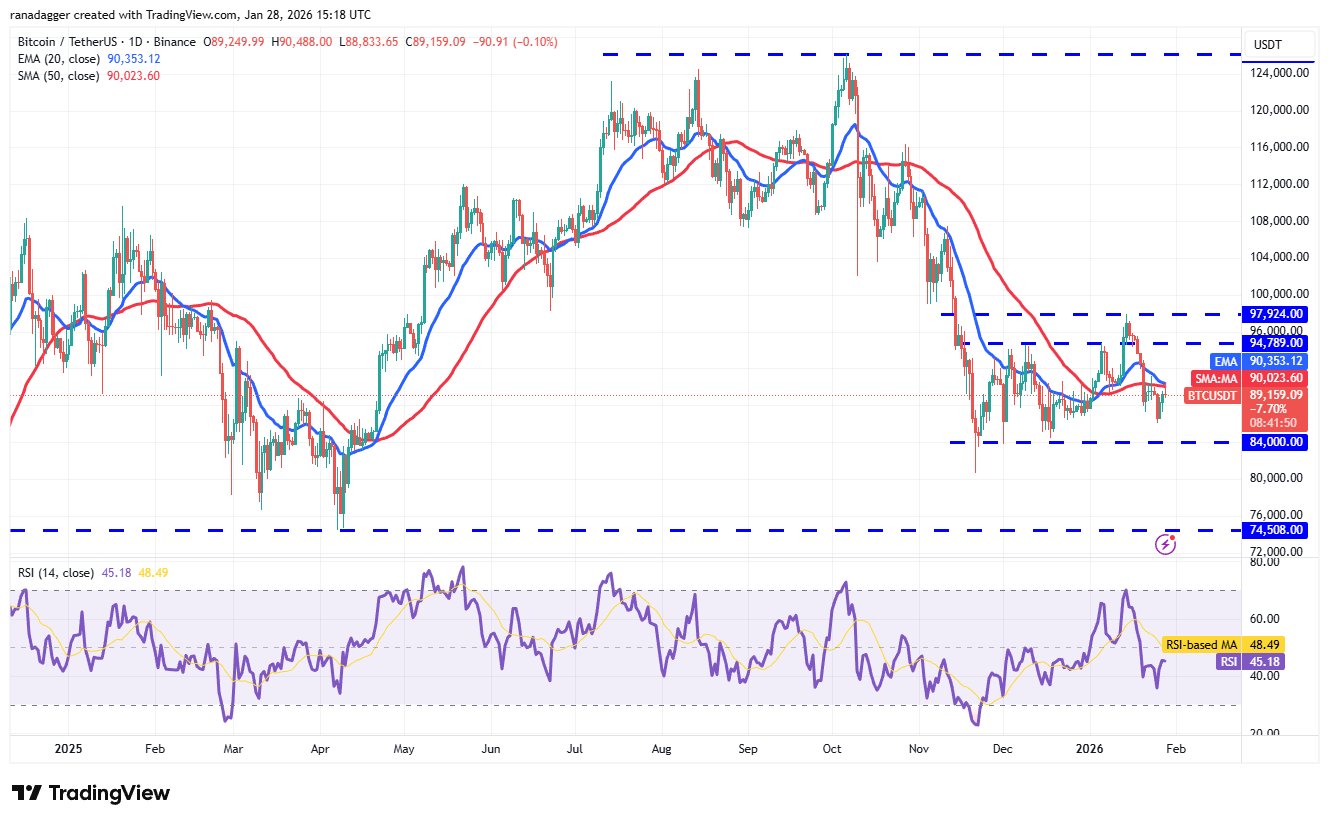 Verkäufer versuchen, Bitcoin aufrechtzuerhalten (BTC) unter die 90.500-Dollar-Marke, aber die Bullen üben weiterhin Druck aus. Das sagte Tom Lee, geschäftsführender Gesellschafter von Fundstrat, auf CNBC Kryptowährungen sollten bei einem schwächeren Dollar steigenaber die Händler reagierten, indem sie weiterhin in Gold und Silber investierten. Lee deutete an, dass Krypto wahrscheinlich aufholen wird, nachdem die Gold- und Silber-Rallye eine Pause eingelegt hat.
