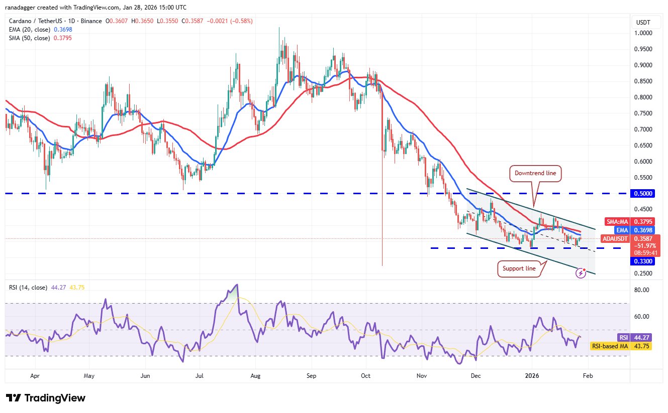 Cardanos (ADA) hat nach dem Abprallen von der 0,33-Dollar-Marke die gleitenden Durchschnitte erreicht, wo die Bären voraussichtlich eingreifen werden.