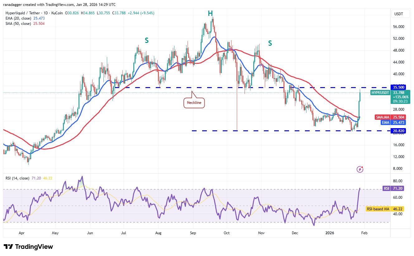 Verkäufer müssen das Niveau von 35,50 $ verteidigen und den Hyperliquid-Preis unter die gleitenden Durchschnitte ziehen, um die Aufwärtsdynamik abzuschwächen.