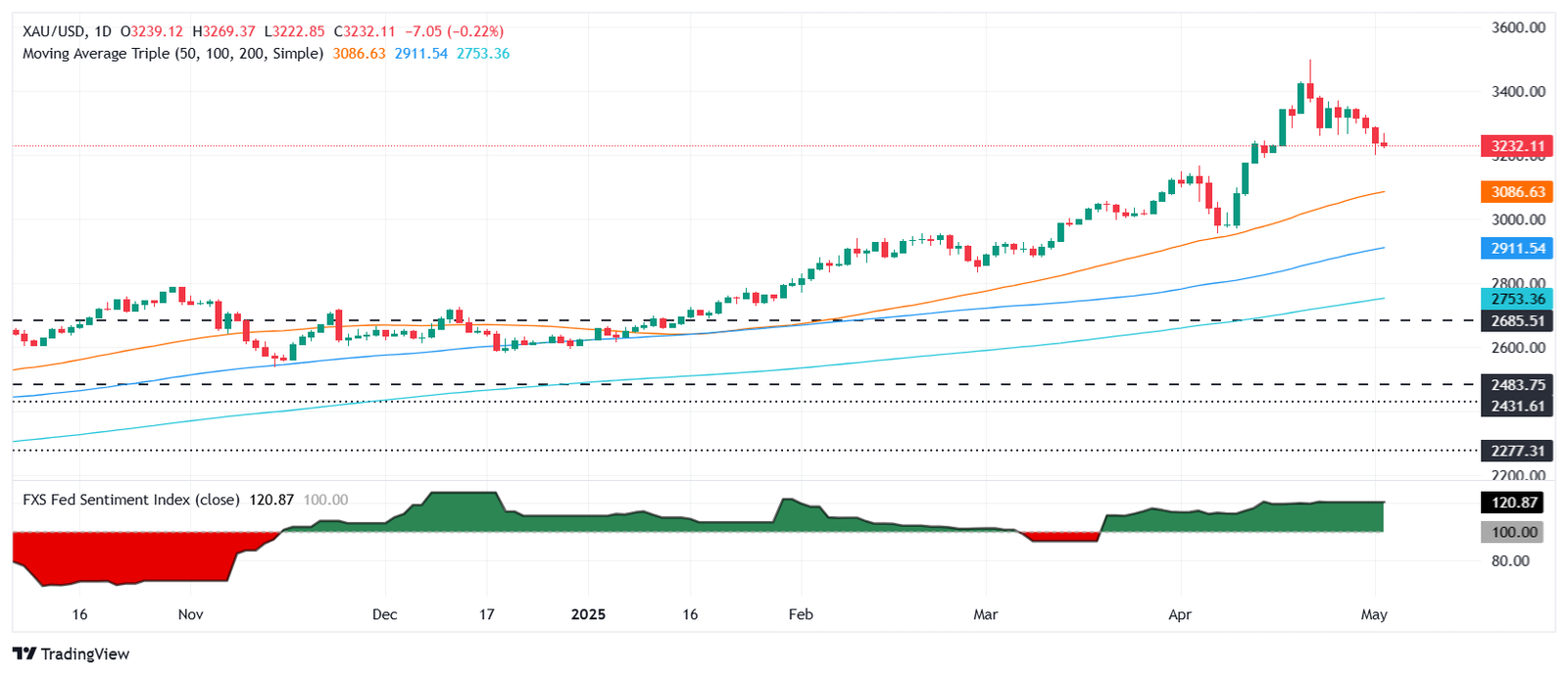 XAU/USD Technische Aussicht: Goldpreis bleibt optimistisch, aber bereit, unter 3.200 USD zu fallen