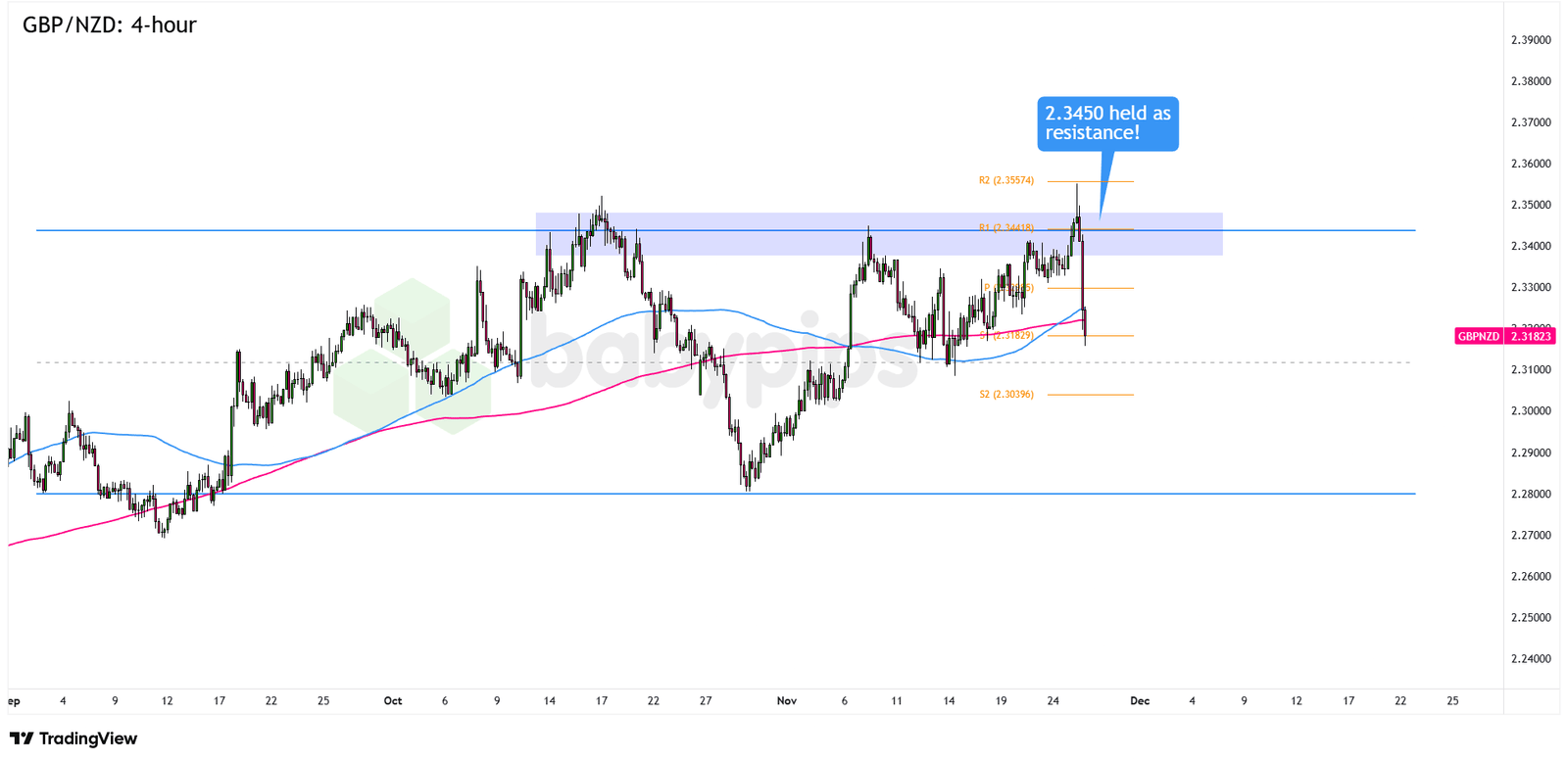 Wenn die Kerzen anfangen zu zögern und die Käufer wieder eingreifen, könnte der Abschwung im mittleren Bereich ins Stocken geraten und GBP/NZD könnte wieder steigen, wobei der Bereich von 2,3500 als erstes Aufwärtsziel hervorsticht.