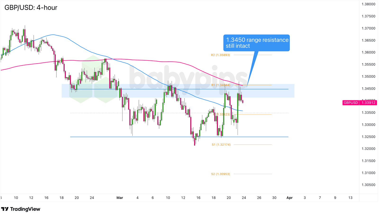 Wenn die Katalysatoren dieser Woche jedoch genügend Kaufdruck erzeugen, um den GBP/USD über den Widerstand von 1,3450 zu drücken, dann könnte eine Bewegung in Richtung 1,3600 in der Nähe des Pivot-Punkts R2 (1,3589) im Spiel sein, wobei auch höhere Wendepunkte wie 1,3750 auf dem Radar sind.