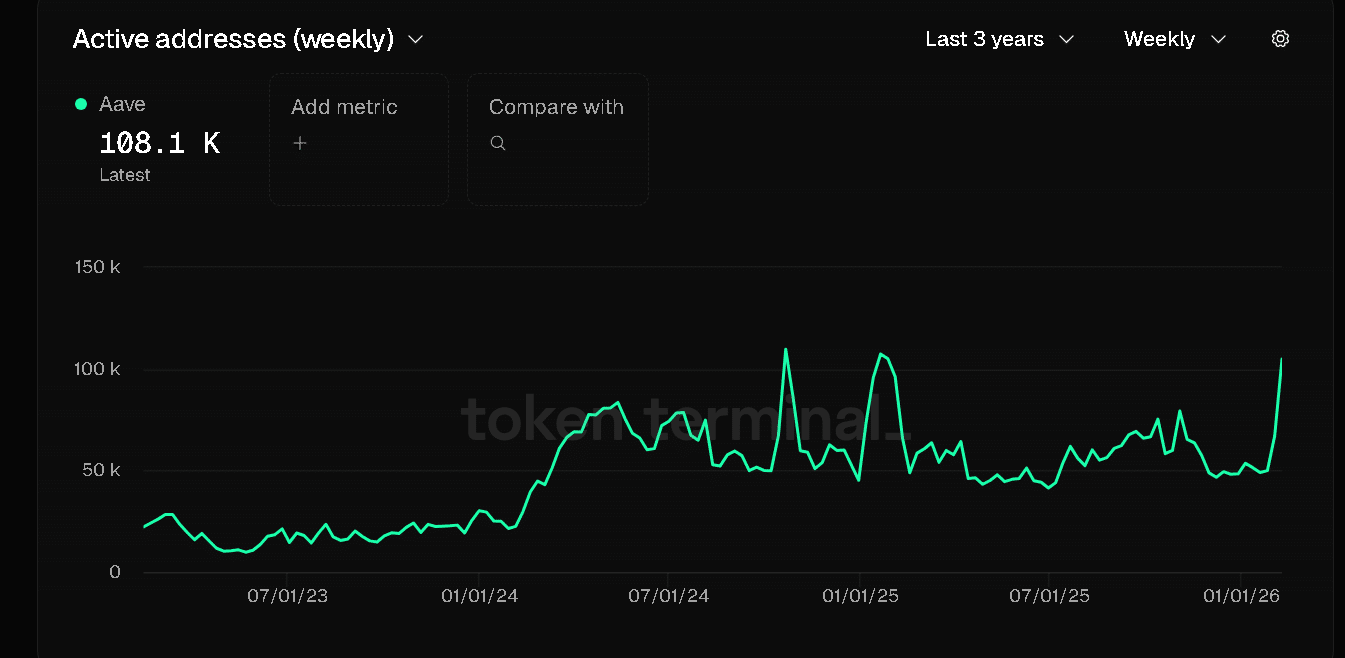 Die wöchentlichen aktiven Adressen von AAVE stiegen wieder auf das Niveau von Ende 2024 und Anfang des ersten Quartals 2025. Diese Erholung markierte eine entscheidende Rückkehr der Netzwerkbeteiligung. Insbesondere nach einer Abklingzeit in der Mitte des Zyklus nahm das Benutzerengagement zu.