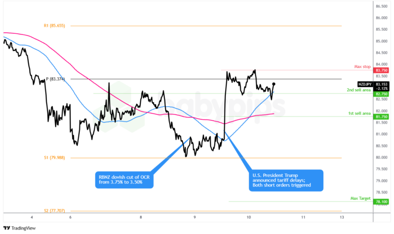 Nur wenige Stunden nachdem unser bärisches Handelsaufbau ausgelöst worden war, kündigte US-Präsident Trump eine 90-tägige Pause für höhere gegenseitige Tarife für die meisten Handelspartner an und löste einen massiven breiten Marktrisiko aus, einschließlich in NZD/JPY. Dies lieferte eine wertvolle (und schmerzhafte) Lektion in der Marktdynamik und im Risikomanagement, da die Position nach einer unerwarteten politischen Ankündigung schnell ihren Maximum erreichte. Lassen Sie uns untersuchen, was passiert ist und was wir aus dieser Erfahrung lernen können.