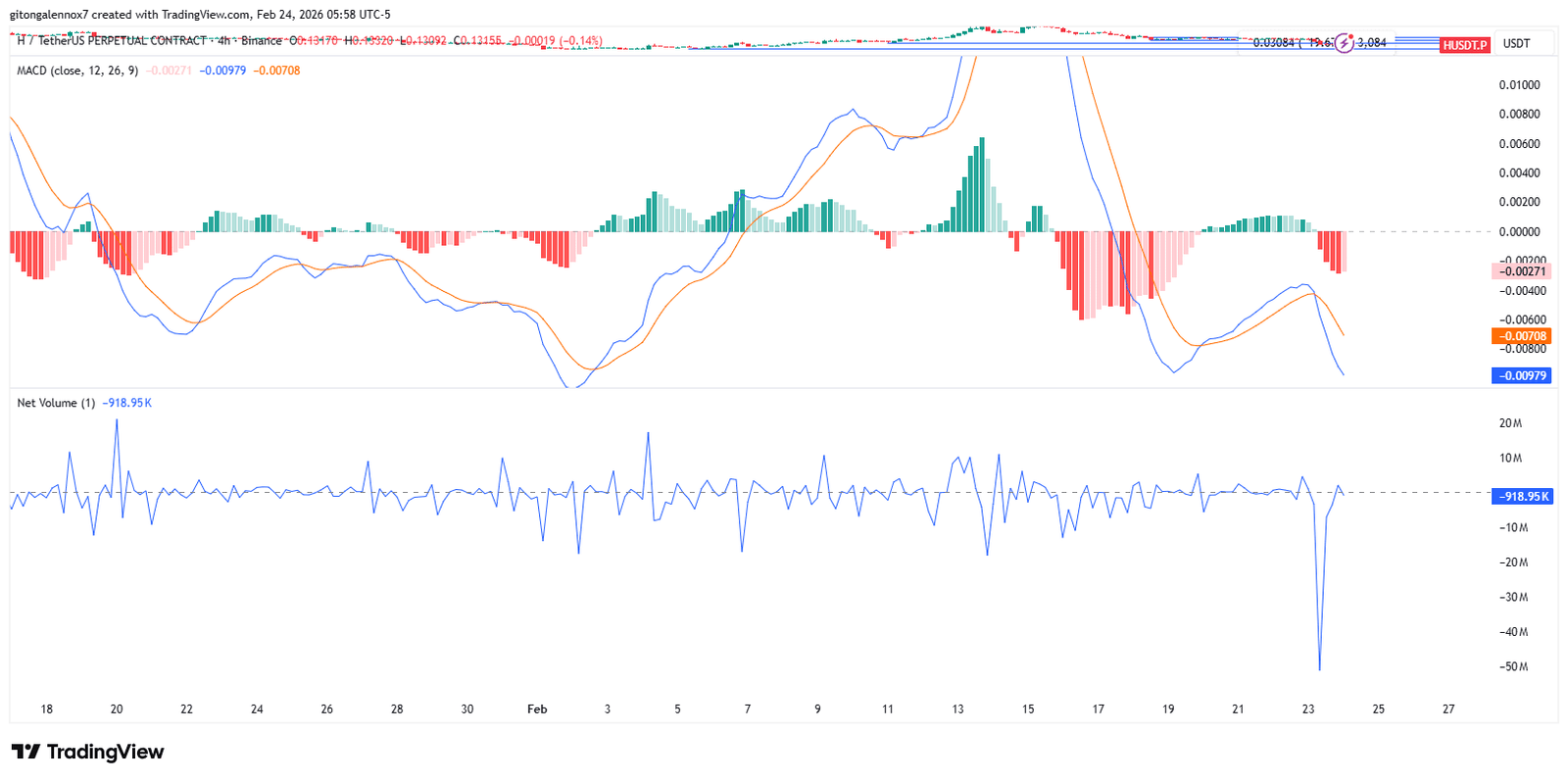 Momentum- und Volumenindikatoren fügten der Analyse mehr Kontext hinzu. Trotz des freien Falls deutete der MACD darauf hin, dass H die Abwärtsdynamik verlor.