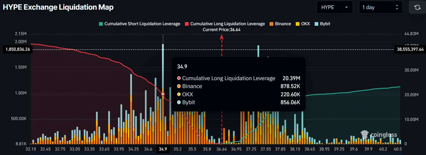 Dies deutet darauf hin, dass die Zuversicht der Händler auf der Abwärtsunterstützungsebene und in Long-Positionen stärker ist, da sie davon ausgehen, dass der HYPE-Preis in absehbarer Zeit wahrscheinlich nicht unter die 34,90-Dollar-Marke fallen wird.