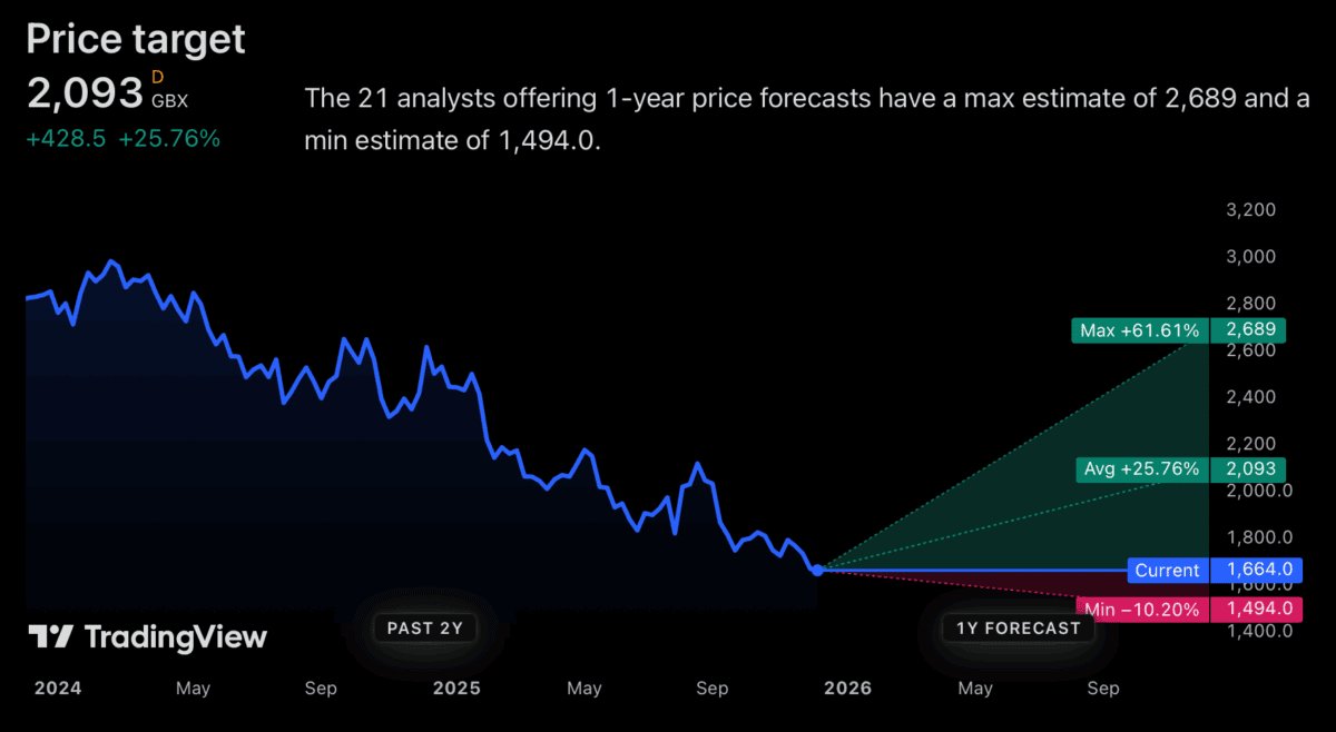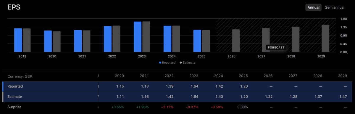 Für 2026 erwarten Analysten einen Umsatzanstieg von 0,5 % und ein Gewinnwachstum pro Aktie von 1 %. Und ich bin nicht davon überzeugt, dass das ausreichen wird, um die Aktie auf fast 21 £ zu bringen.