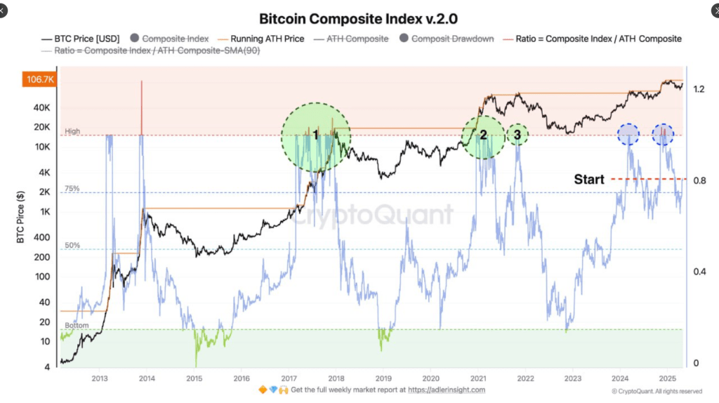 Wenn Bitcoin seinen Dynamik beibehält und den zusammengesetzten Index auf mehr als 1,0 fördert, prognostizieren die Analysten den Preis, der stark steigt. Das angegebene Zielbereich liegt zwischen 150.000 und 175.000 US -Dollar. Das ist, wenn bullische Impuls beschleunigt und vergangene Trends wiederholt werden.