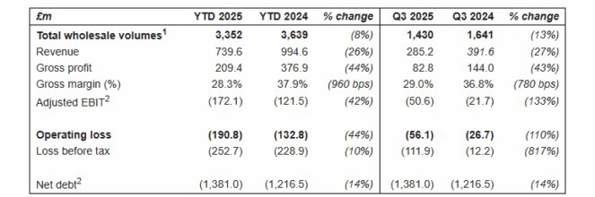 Im dritten Quartal sank der Umsatz im Jahresvergleich um 27 % auf 285,2 Mio. £, während das Großhandelsvolumen um 13 % auf 1.430 sank. Bei jeder zweiten Zahl verschlechterte sich die Situation, sodass die Zahlenlage alarmierend ist.