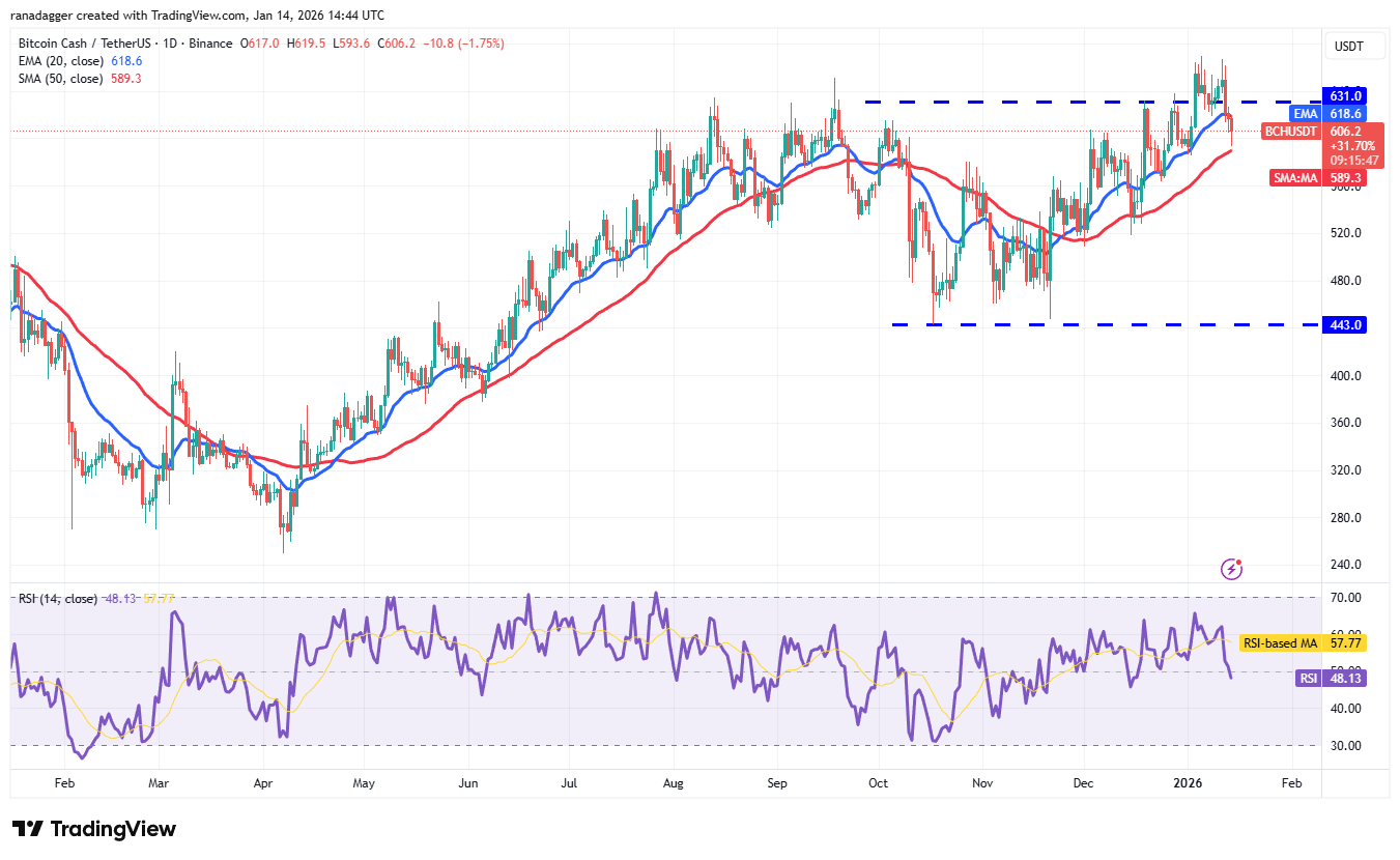 Bitcoin-Bargeld (BCH) versucht, bei den gleitenden Durchschnitten Unterstützung zu finden, aber die Bären üben weiterhin Druck aus.