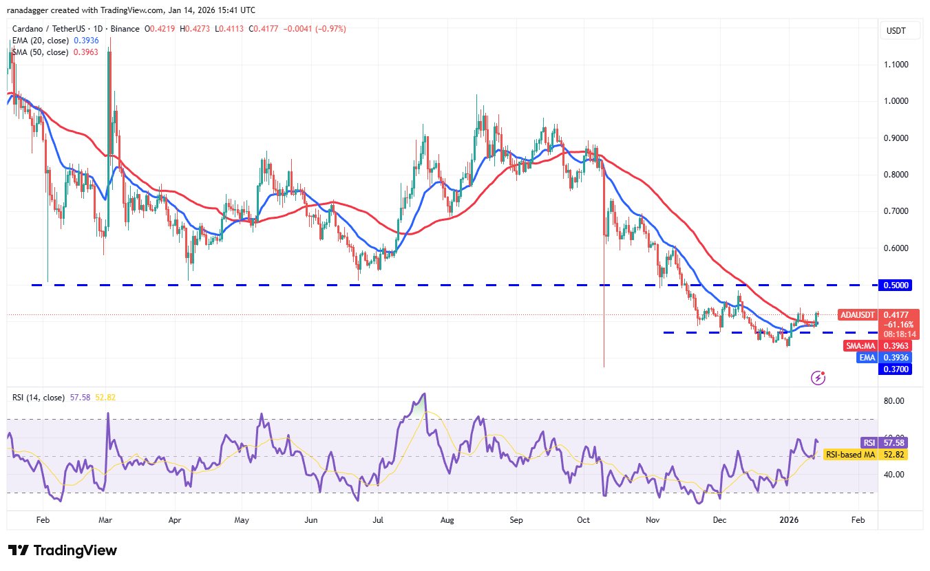Käufer haben den 20-Tage-EMA (0,39 USD) in Cardano erfolgreich verteidigt (ADA), was auf eine positive Stimmung hinweist.