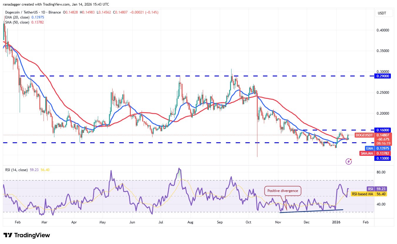 Wenn Käufer den Preis über den Widerstand von 0,16 $ drücken, wird das DOGE/USDT-Paar ein zinsbullisches umgekehrtes Kopf-Schulter-Muster vollenden. Der Dogecoin-Preis könnte dann in Richtung des Ziels von 0,20 $ steigen.