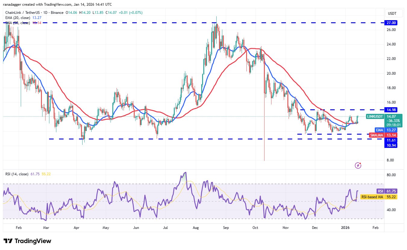 Die Bullen werden versuchen, ihre Position zu stärken, indem sie den Chainlink-Preis über den Widerstand von 14,98 $ drücken. Wenn ihnen das gelingt, könnte das LINK/USDT-Paar in Richtung 17,66 US-Dollar steigen. Damit kommt die große Spanne von 10,94 $ bis 27 $ ins Spiel.