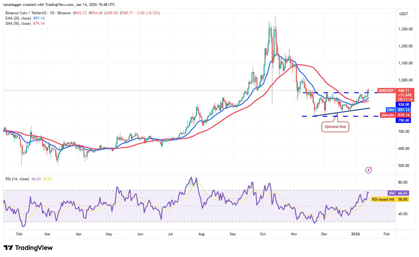 BNB (BNB) schloss am Dienstag über der 928-Dollar-Marke und vervollständigte damit ein bullisches aufsteigendes Dreiecksmuster.