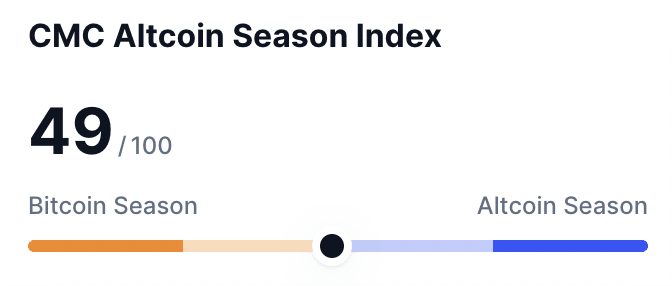 Bedenken Sie Folgendes: Der Wert des Altcoin-Saisonindex lag bei 49, was sehr nahe daran liegt, eine Altcoin-Rallye anzukündigen.
