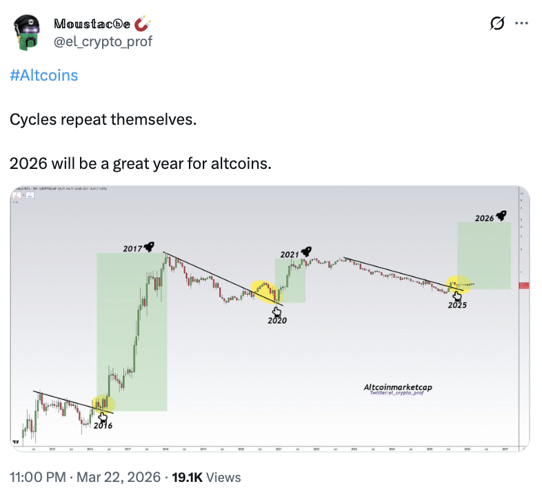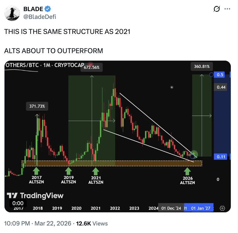 Im Gegenteil: Analysten, die Altcoins befürworten, glauben, dass dieser Zyklus dem von 2021 sehr ähnlich sieht.
