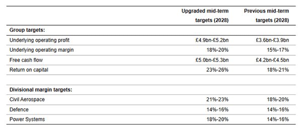 Der zugrunde liegende Gewinn pro Aktie betrug 29,44 Pence, was bedeutet, dass die Aktie jetzt mit dem atemberaubenden 47-fachen des historischen Gewinns gehandelt wird. Ich halte das jedoch für erfreulicher, wenn man bedenkt, dass Rolls-Royce auch seine mittelfristigen Ziele (2028) massiv angehoben hat und unter anderem eine deutliche Erhöhung der erwarteten Kapitalrendite angekündigt hat.