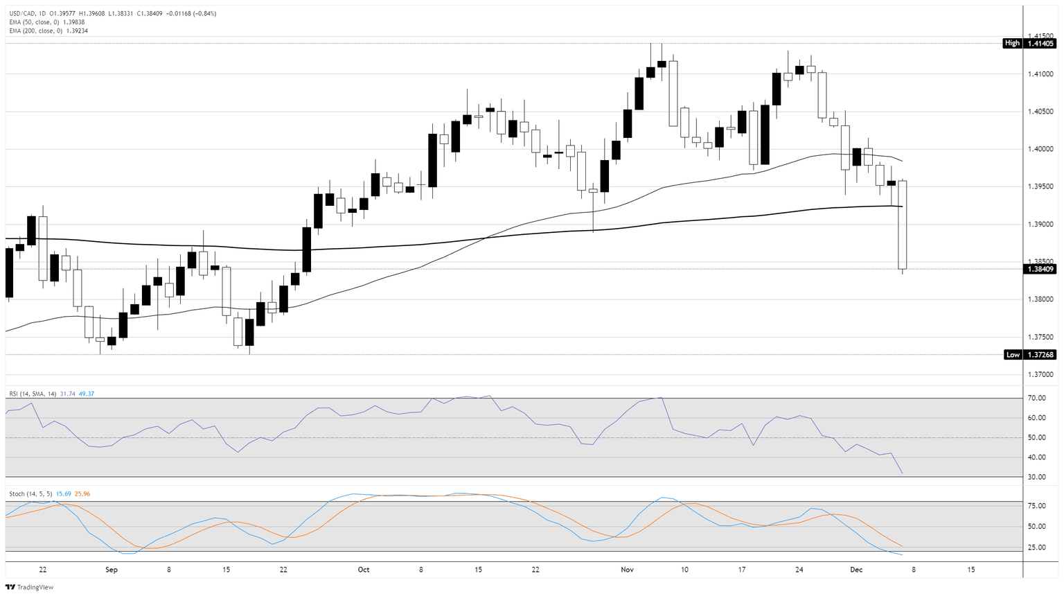 Die kanadischen Arbeitsmarktdaten fielen im November weitaus besser aus als erwartet, wobei die kanadische Wirtschaft weit mehr Arbeitsplätze geschaffen hat als erwartet. Die kanadische Arbeitslosenquote fiel auf den niedrigsten Stand seit August 2024.