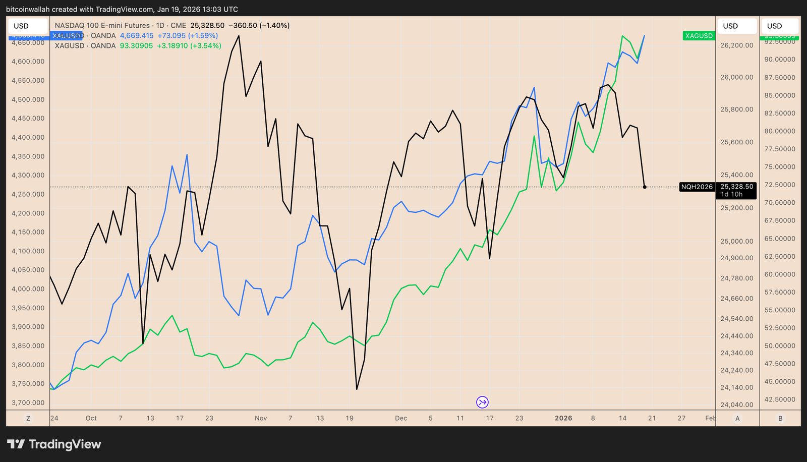 At the same time, traditional safe-haven assets such as gold and silver rallied, signaling capital rotation away from risk.