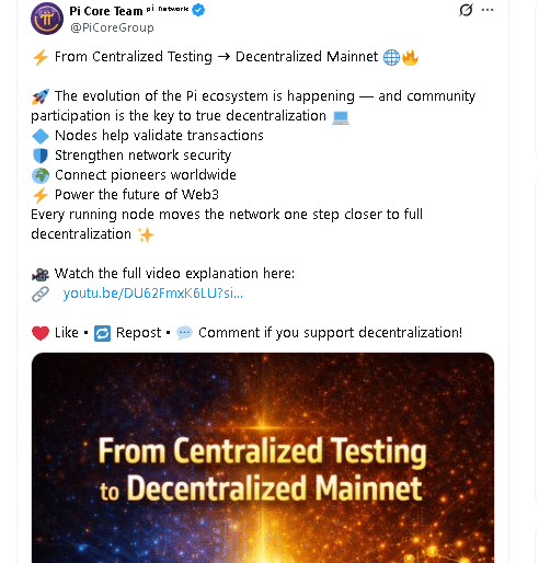 Das Pi Core Team bezeichnete Knoten als die „vierte Rolle“ im Ökosystem. Der Betrieb eines Knotens bedeutete die Validierung von Transaktionen, die Unterstützung der Distributed-Ledger-Infrastruktur und die Stärkung des Konsenses. Jeder aktive Knoten soll das Netzwerk der vollständigen Dezentralisierung näher gebracht haben.