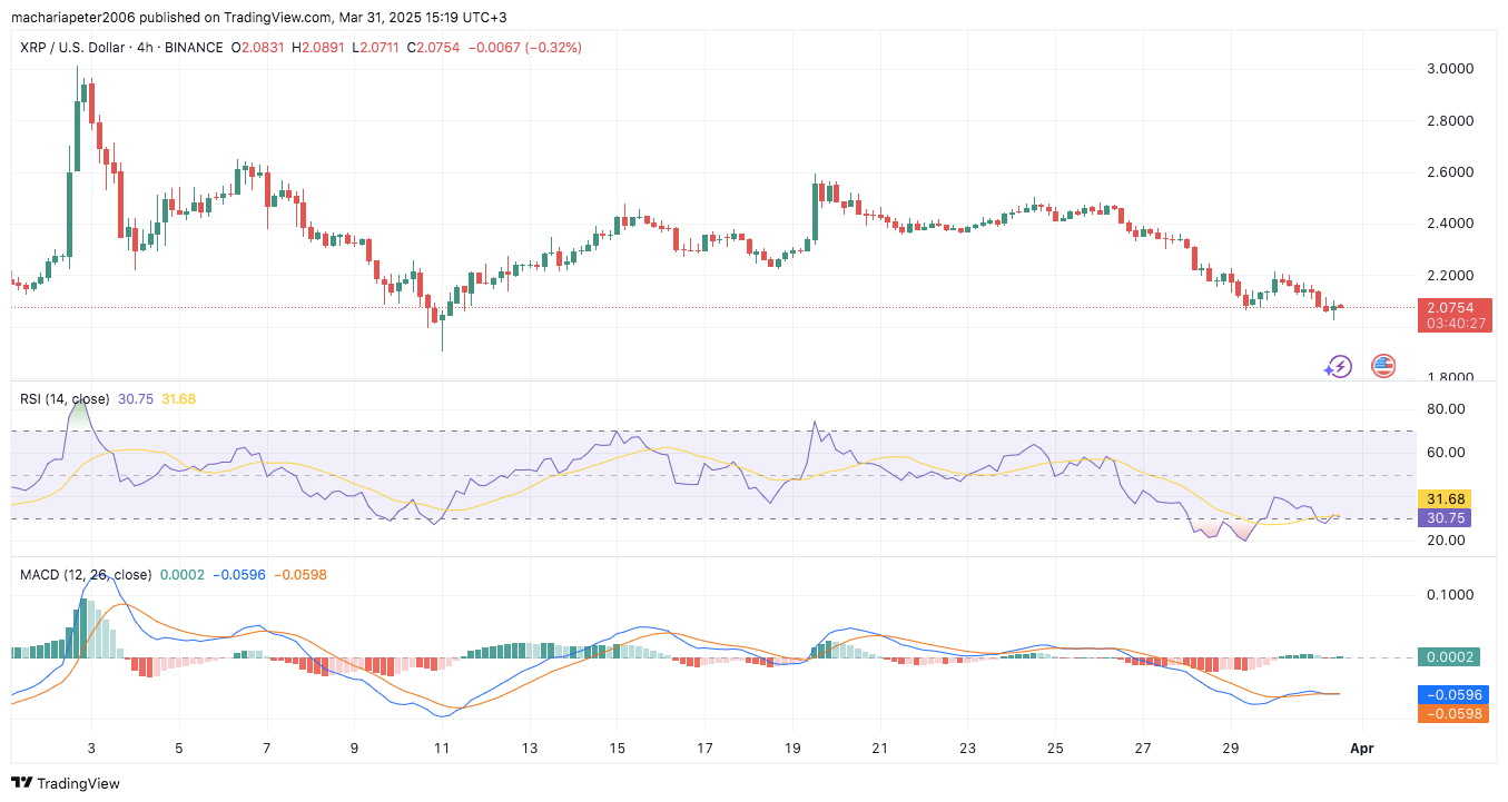 XRP nähert sich nach einem plötzlichen wöchentlichen Rückgang einer erhöhten Volatilität. Der Token fiel von einem kürzlichen Hoch von 2,50 USD auf ein Tief von 2,06 US -Dollar und kennzeichnete seinen ersten wöchentlichen Verlust seit Anfang März, als es einen Rückgang um 30% verzeichnete.