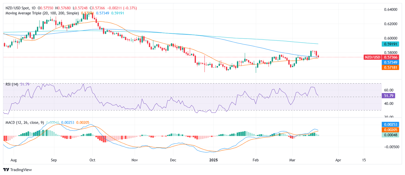 - NZD/USD wurde in der Zone 0,5730 zu sehen, die vor der asiatischen Sitzung bescheidene tägliche Verluste verzeichnete.