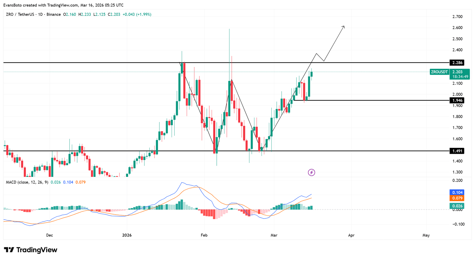 Die jüngsten Preisbewegungen zeigen, dass sich LayerZero stark von der Unterstützungsmarke von 1,491 $ erholt und stetig in Richtung der Widerstandszone von 2,286 $ vordringt.