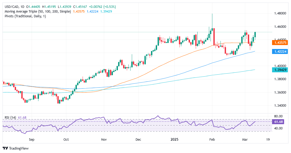 Der USD/CAD Von 1,4410 auf 1,4477 versammelt, bevor die psychologische Zahl von 1,4500 mit 1,4542 März den Höhepunkt des März beobachtet.