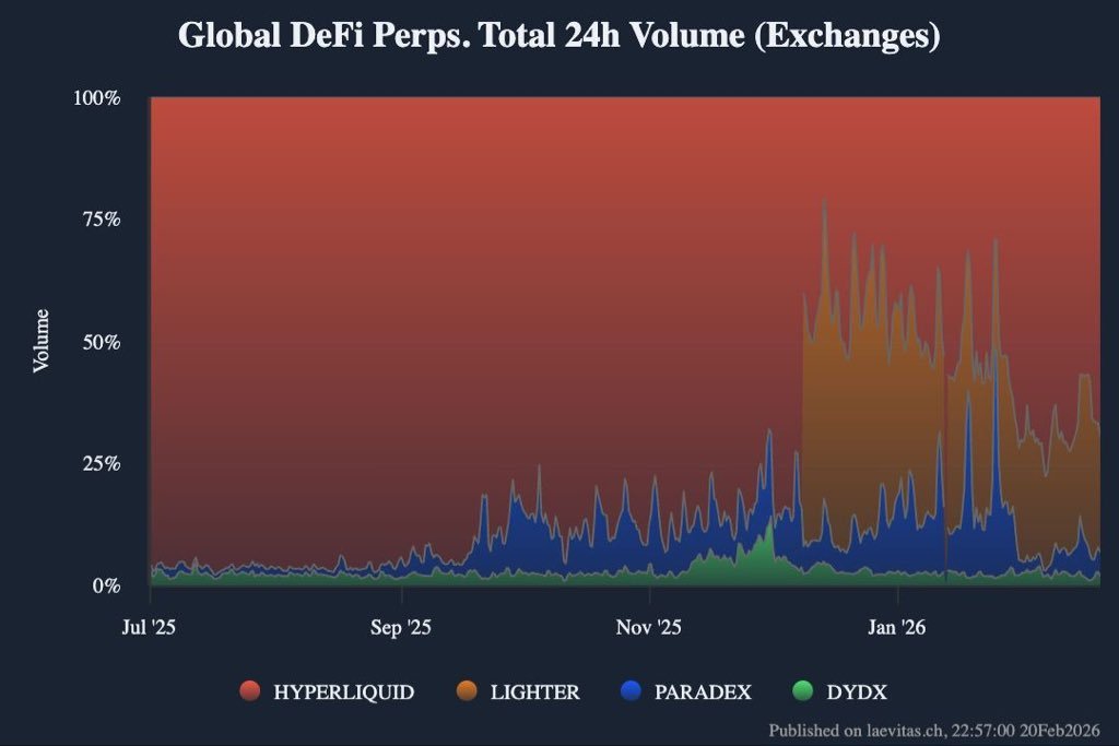 Liquiditätsabflüsse hatten die Position von Lighter bereits geschwächt, als große Token-Bewegungen an die Oberfläche kamen. Nach dem Airdrop ging das Volumen zurück und der Marktanteil sank von 60 % auf einstellige Werte. Als sich dieser Rückgang abzeichnete, verlagerte sich der Fokus vom Börsenwettbewerb auf die Token-Positionierung.