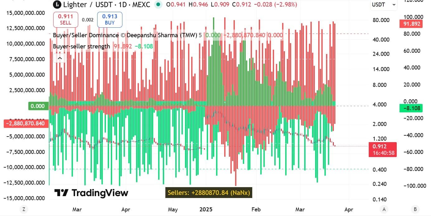 Der Rückgang von Lighter setzte sich fort, da die Verkäufer in Panik gerieten und ihre Ausgaben erhöhten, nachdem LIT das Unterstützungsniveau von 1 USD nicht halten konnte, was zu weiteren Abwärtsbewegungen führte.