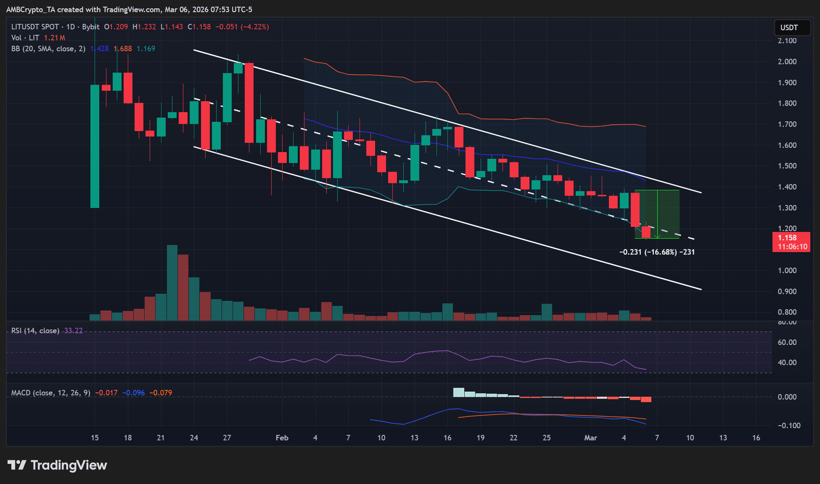 LIT, der native Token von Lighter DEX, verlor am Wochenende über 16 % seines Wertes.