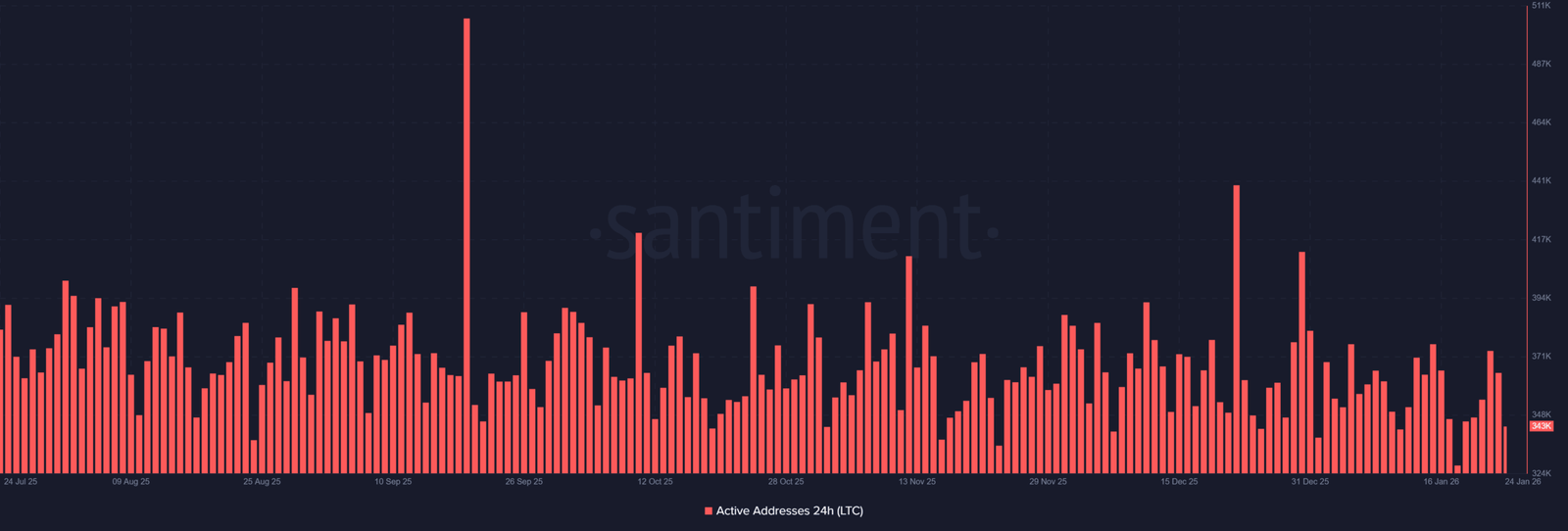 Santiment-Daten deuten auf einen Anstieg der aktiven Adressen in den letzten sieben Tagen hin. Dieser Anstieg steht im Zusammenhang mit der erneuten Aufmerksamkeit der Händler für das ETF-Engagement von Litecoin.