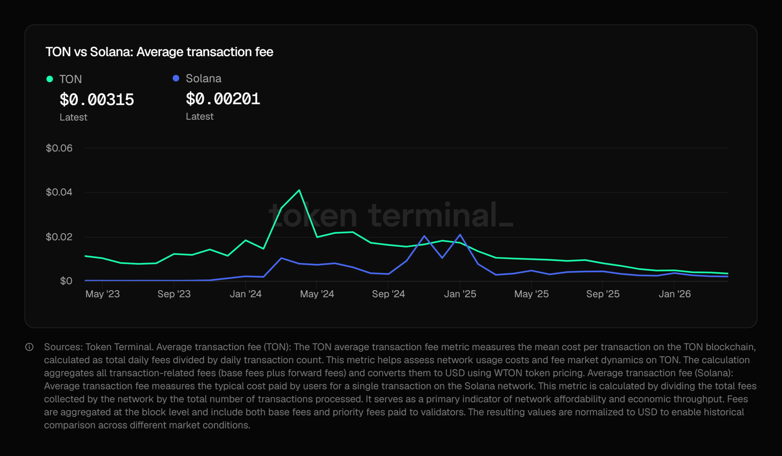 Derzeit betragen die durchschnittlichen Transferkosten von TON etwa 0,00315 US-Dollar, während Solana 0,00201 US-Dollar berechnet. Mit anderen Worten: Solana ist 40 % günstiger als TON.