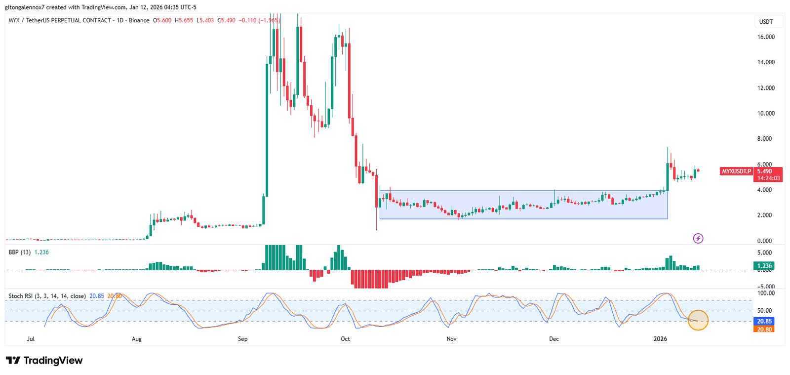 MYX Finance [MYX] wurde nach wochenlanger Seitwärtskonsolidierung seit dem 11. Oktober über einem wichtigen Ausbruchsniveau nahe 4 USD gehandelt. Die Preisbewegung zeigte ein ausgedehntes Gleichgewicht, da Käufer und Verkäufer um die Kontrolle kämpften.
