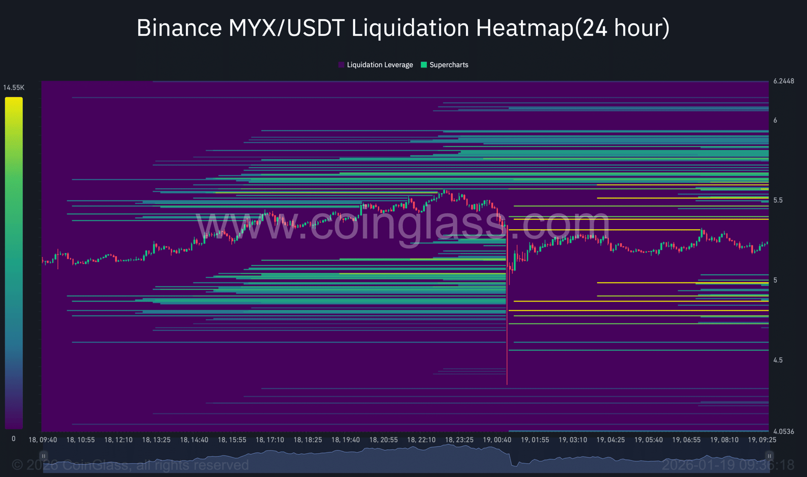 Die Liquidation-Heatmap-Daten boten zusätzliche Einblicke in den möglichen nächsten Schritt von MYX.