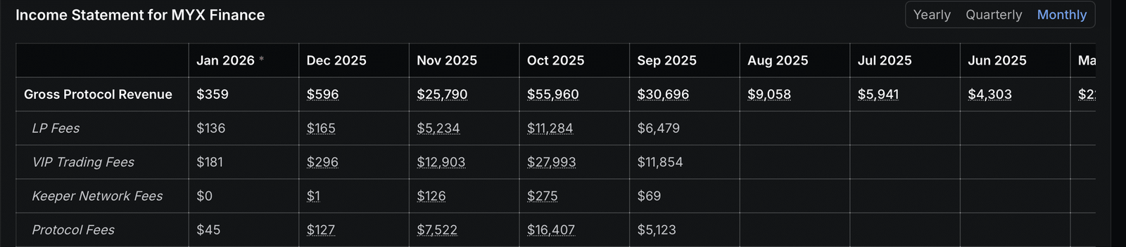 - MYX Finance verzeichnet den niedrigsten monatlichen Umsatz seit seiner Gründung, da die Benutzernachfrage weiter abnimmt.